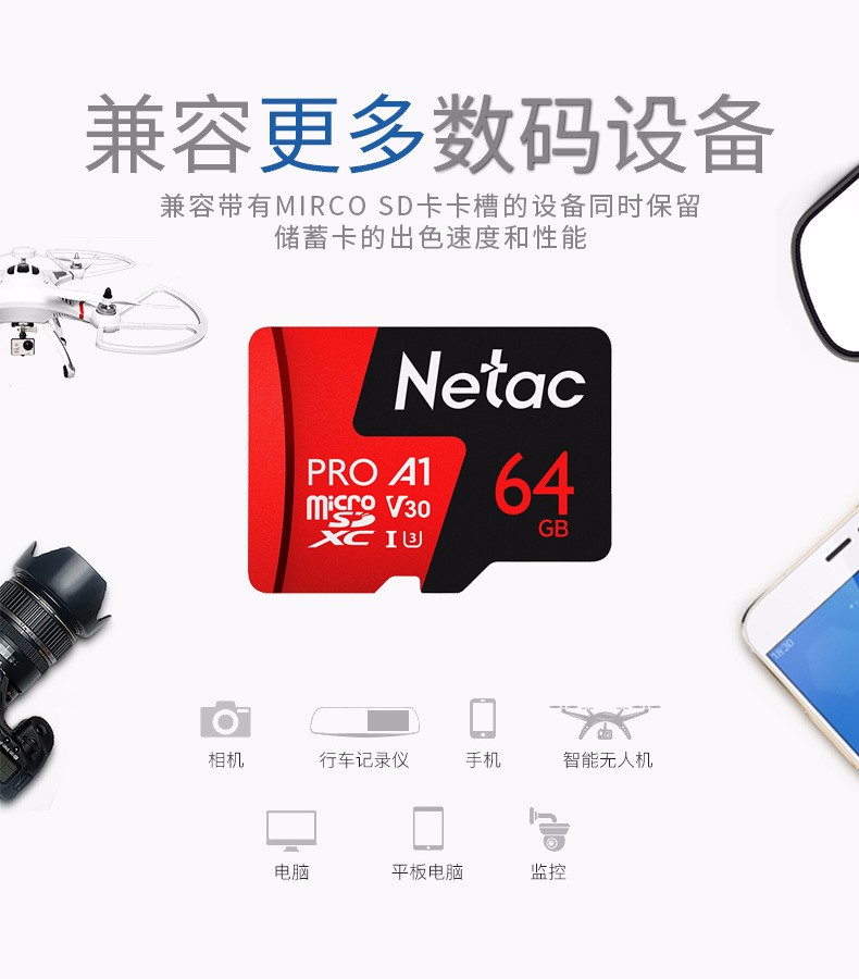 朗科(Netac)TF卡C10行车记录仪监控摄像头手机存储microsd卡航拍无人机运动相机内存卡 64G U1 P500¥69.00