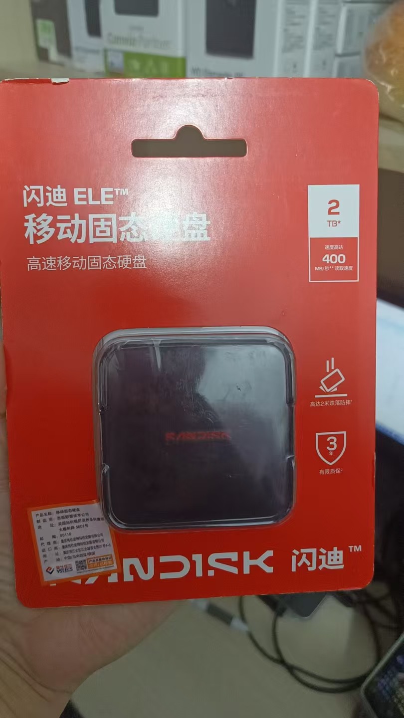 闪迪/SanDisk 闪迪EL11-2T 移动硬盘读取速度 400MB/S 接口USB3.0 长宽高 64.5*64.5*8.7mm 重量45G 兼容 WINDOWS/MAC